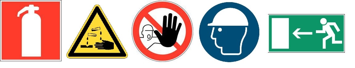 Tous les pictogrammes de sécurité répondent aux principes préétablis. La combinaison de couleurs et formes indique une interdiction, une obligation, un danger ou un signal de sauvetage (voir illustration). Vous pouvez d’ailleurs toujours vous baser sur ces couleurs et formes pour créer vos propres panneaux de sécurité, du moment qu’ils respectent les principes préétablis. Vous ne pouvez par exemple jamais utiliser de vert pour un panneau d’interdiction.