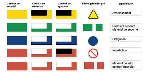 Source : couleurs et significations des pictogrammes de sécurité, aperçu créé par Prevent