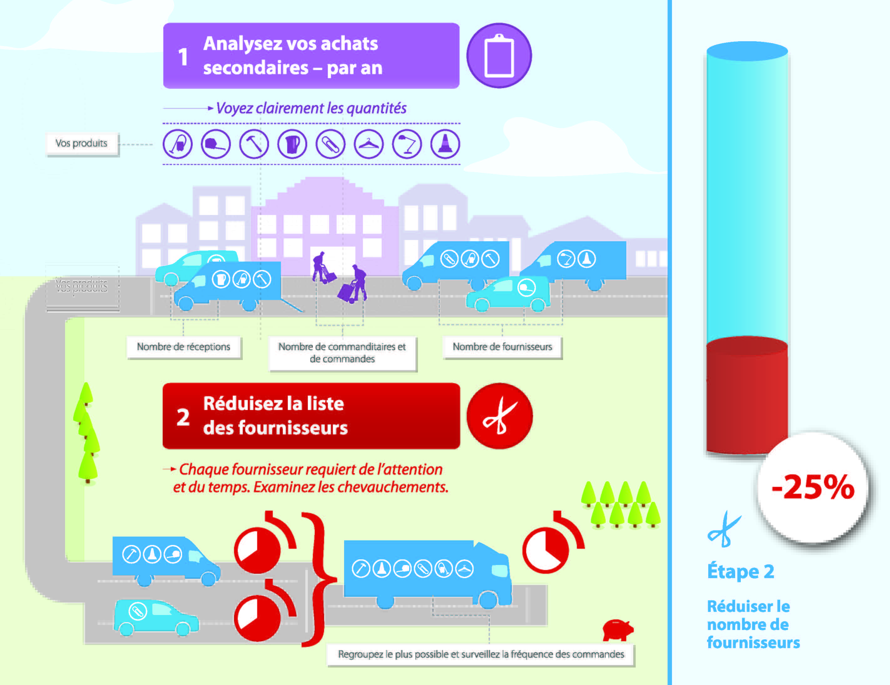 En 5 étapes, économisez 40 % sur vos achats secondaires. Étapes 1 et 2 : réduisez le nombre de fournisseurs.
