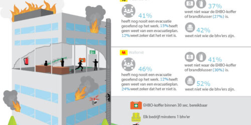Het kan echt overal gebeuren. Brand, giftige stoffen, een verdacht persoon of een bommelding: er zijn talloze serieuze redenen om te evacueren. Maar uit onderzoek* van Manutan blijkt dat bijna de helft van de werknemers nog nooit een evacuatie heeft geoefend. Heel veel ondervraagde werknemers (27 procent v.d. Vlamingen, 36 procent v.d. Walen) weten niet of er wel een evacuatieplan...
