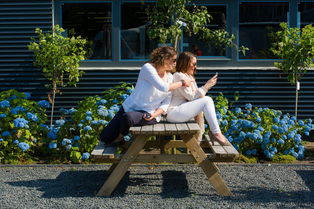 De buitenruimte van je bedrijf is wel degelijk van belang. Weinig brainstormsessies zijn zo productief als de sessies die in het zonnetje aan de picknicktafel plaatsvinden. Bovendien komt een inspirerende buitenruimte met het juiste buitenmeubilair de fysieke en mentale gezondheid van je werknemers ten goede. Ze krijgen namelijk de kans om hun bureau even achter te laten, wat frisse lucht in te ademen en vitamine D op te doen. Verder werkt de buitenlucht ontspannend en daalt het stressniveau daardoor al snel. Tot slot ontstaan er buiten makkelijker sociale gesprekken, wat bevorderend is voor de sfeer op de werkvloer. Een paar picknicktafels en buitenafvalbakken volstaan – tenminste, als ze op de juiste plaats staan. De ontmoetingsplaats ligt idealiter in de zon, uit de wind en afgeschermd van eventuele verkeersgeluiden en de rokersruimte.