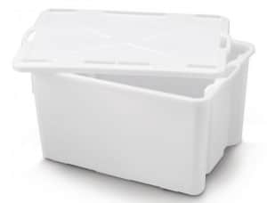 Nestbaar en op deksel stapelbaar. Ook verkrijgbaar met veiligheidsverzegelingen. Bekijk hier het assortiment transportbakken.