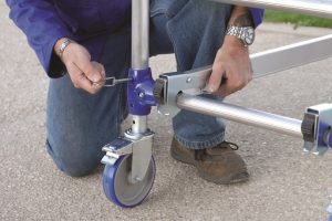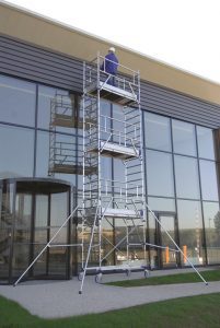 Hou je dus aan de veiligheidsinstructies van de rolsteiger en kies voor veilig werken op hoogte.
