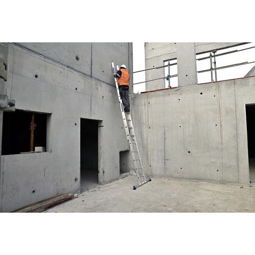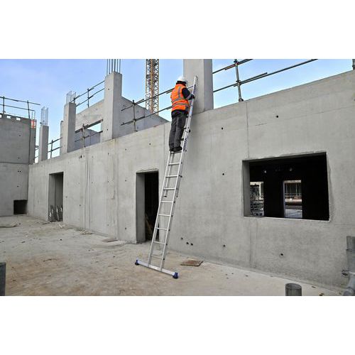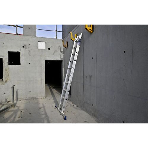 - Echelle coulissante à main en aluminium, 2 plans, avec barre stabilisatrice munie de patins antidérapants.