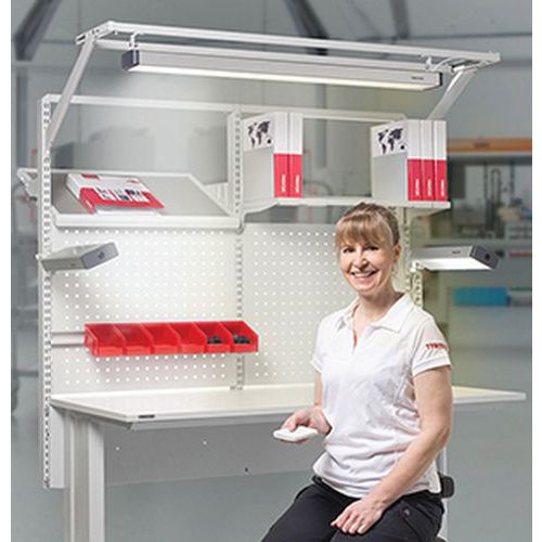 Éclairage de poste de travail réglable. Eclairez l’ensemble de votre plan de travail. Convient pour les établis TNL. Température de couleur 4000K.