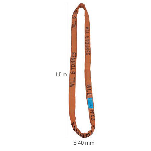 Élingue ronde sans fin, CMU: 6000 kg, Longueur utile: 1.5 m, Ø: 40 mm, Modèle: Ronde, Coloris: Marron Élingue ronde sans fin, CMU: 6000 kg, Longueur utile: 1.5 m, Ø: 40 mm, Modèle: Ronde, Coloris: Marron