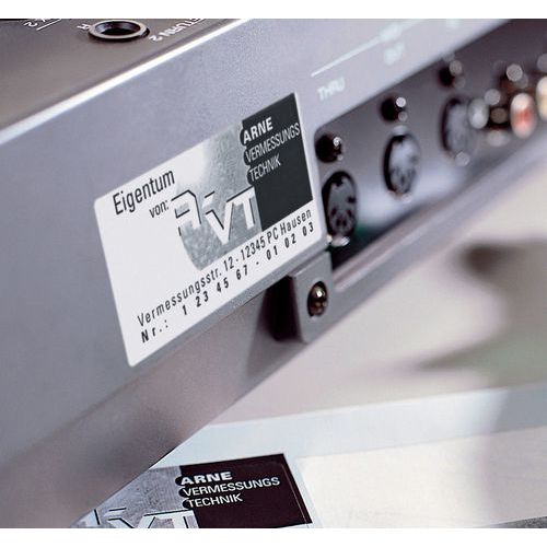 Étiquette inaltérable et indéchirable grâce à sa matière polyester. Résistante à l'eau, l'huile, aux salissures, aux éclaboussures, aux changements de températures de -20 à +80°. Utilisable aussi bien en intérieur qu'en extérieur.