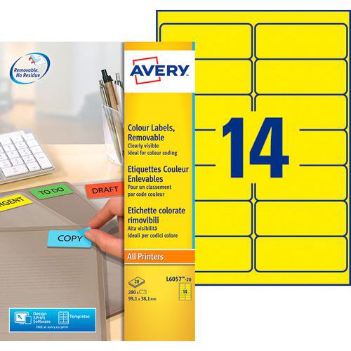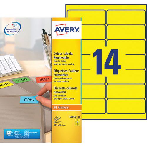 Étiquette couleur repositionnable Avery, Nb d'étiquettes/planche: 14, Nb d'étiquettes: 280 Étiquette couleur repositionnable Avery, Nb d'étiquettes/planche: 14, Nb d'étiquettes: 280