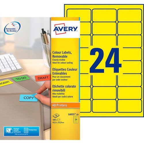 Étiquette couleur repositionnable Avery, Nb d'étiquettes/planche: 24, Nb d'étiquettes: 480 Étiquette couleur repositionnable Avery, Nb d'étiquettes/planche: 24, Nb d'étiquettes: 480