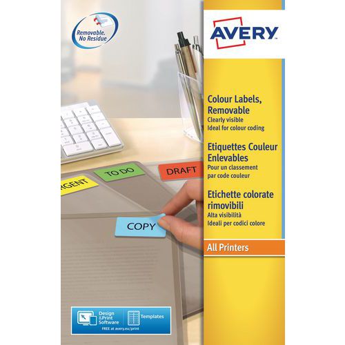 Étiquette couleur repositionnable Avery - Impression laser / jet d'encre, copieur