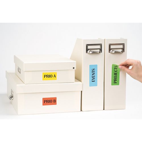 Étiquette colorée prédécoupée pour une identification claire et rapide. Enlevable sans laisser de traces, elle adhère parfaitement même après plusieurs utilisations. Compatible toutes imprimantes: laser, jet d'encre ou copieurs.