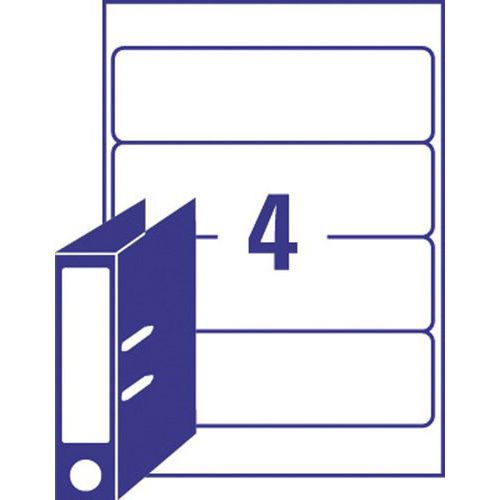 Étiquette dos de classeur blanc, Nb d'étiquettes/planche: 4, Nb d'étiquettes: 100, Étiquette longueur: 192 mm Étiquette dos de classeur blanc, Nb d'étiquettes/planche: 4, Nb d'étiquettes: 100, Étiquette longueur: 192 mm