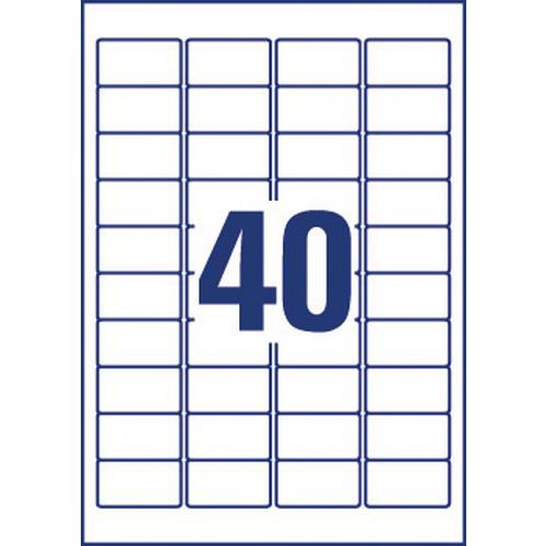Étiquette indécollable, Nb d'étiquettes/planche: 40, Nb d'étiquettes: 800, Étiquette longueur: 45.7 mm
