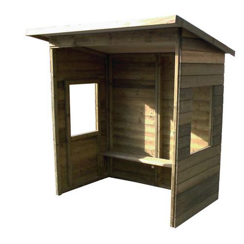 | Intitulé du produit | Abri de bus 2m, Longueur hors tout: 2 m, Profondeur hors tout: 1 m, Hauteur hors tout: 2.10 m, Coloris: Pin |
