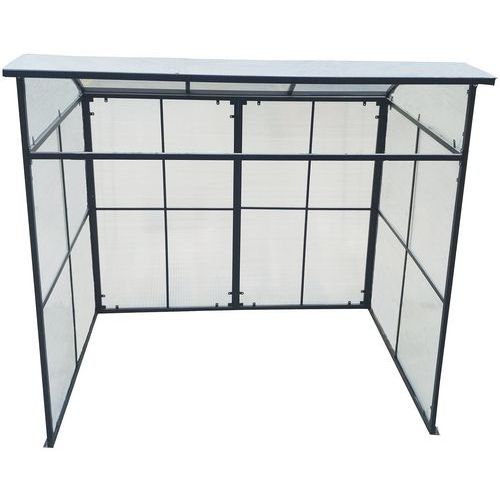 | Intitulé du produit | Abri deux roues simple, Longueur hors tout: 2.50 m, Profondeur hors tout: 2 m, Hauteur hors tout: 2.52 m |