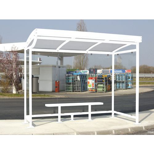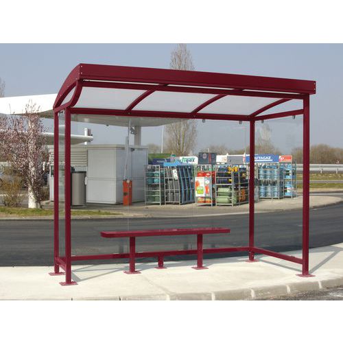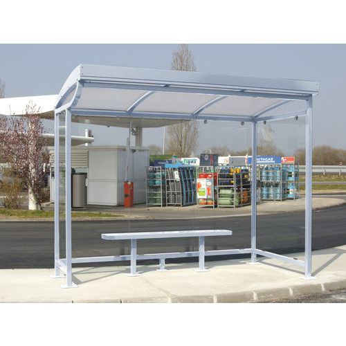 Construction ossature en tube acier galvanisé. Poteaux et traverses 60 x 60 x 3 mm. Arceaux de toiture 60 x 30 x 3 mm. Tôles bandeaux : tôle galvanisée épaisseur 2 mm. Pieds réglables sur platine 200 x 200 x 5 mm. Visserie d’assemblage en acier inoxydable classe A2. Couverture polycarbonate alvéolaire traité anti-UV, d’une épaisseur de 10 mm. Finition peinture polyester thermodurcissable cuite à 200°C, insensible aux UV. Habillage verre trempé «sécurit» clair épaisseur 8 mm. Fixation par vis d’ancrage M12/65 sur dalle béton ou plots béton ou sur un enrobé propre et plan. L'enrobé doit avoir une épaisseur minimum de 7 cm. Autres RAL disponibles sur demande, pour personnalisation