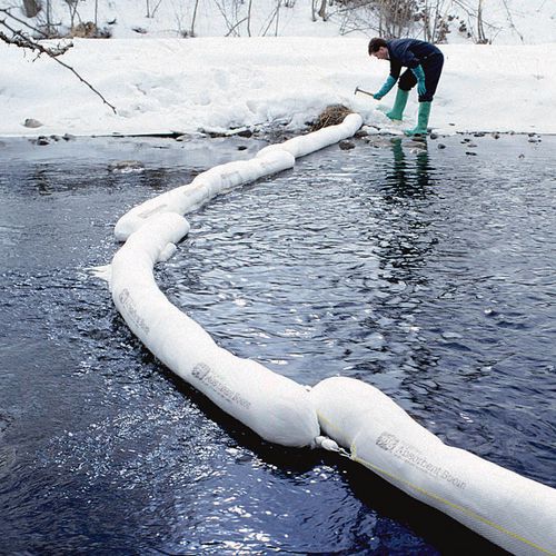 Flottabilité du barrage absorbant à pleine saturation. Assemblage à l'aide des fixations en acier pour couvrir une plus grande surface. Enveloppe renforcée et résistante aux UV. Signalement immédiate des déversements grâce au coloris blanc.