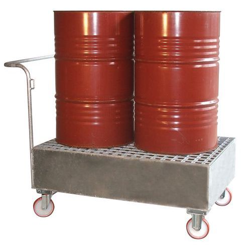 Accessoire pour chariot de rétention métallique. Support de soutirage pour 1 fût couché de 220 L. Sangle de maintien pour 1 ou 2 fûts de 220 L, fixée au guidon. Fabriqué en UE Charge statique maxi (kg) : 400