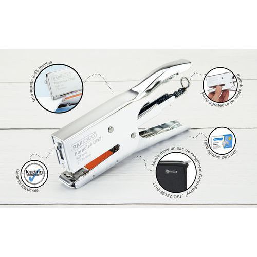| Intitulé du produit | Agrafeuse pince métal système bypass 24/8, Capacité d'agrafage (nb de feuilles): 45, Longueurs: 50 mm |