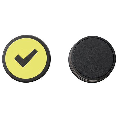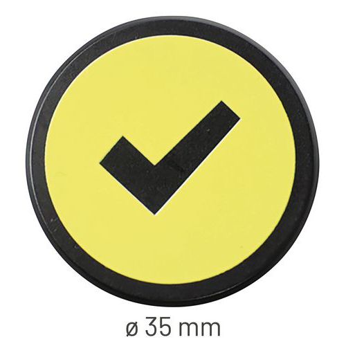 Aimant rond avec symbole vérifié, Type: Vérifié, Coloris: Jaune, Ø: 35 mm, Emballage recyclable: Oui - 100 % Aimant rond avec symbole vérifié, Type: Vérifié, Coloris: Jaune, Ø: 35 mm, Emballage recyclable: Oui - 100 %