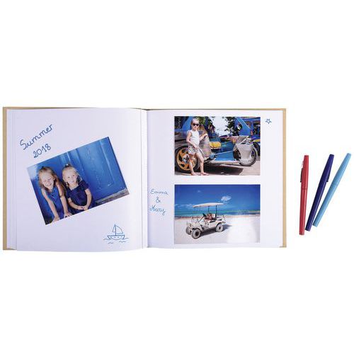 Les pages intérieures de l'album sont réalisées en carte blanche rigide 250g/m2 qualité archive pour une excellente conservation des clichés.