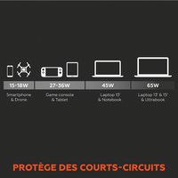 - Puissance rapide et fiable fournissant jusqu’à 65 W