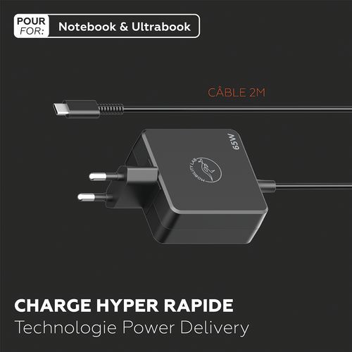 - Chargeur 65W compatible avec tous les appareils muni d'un port USB-C