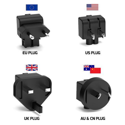 Livré avec un adaptateur de prise 4-en-1 (EU, US, UK, AU/CN).