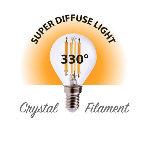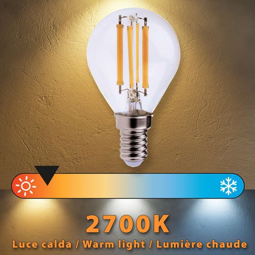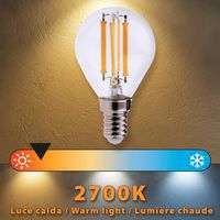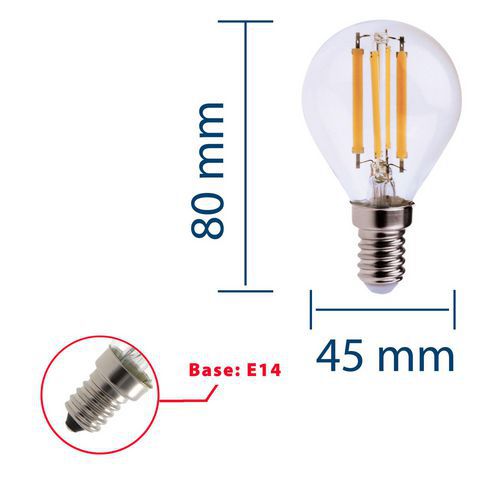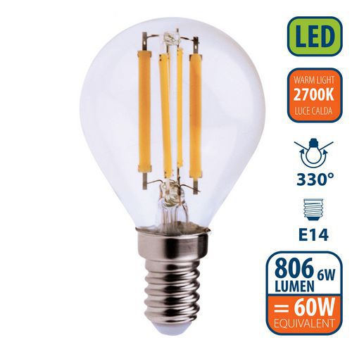 Ampoule à filament LED mini-Sphérique P45 6W, Flux lumineux: 806 lm, Type de culot: E14