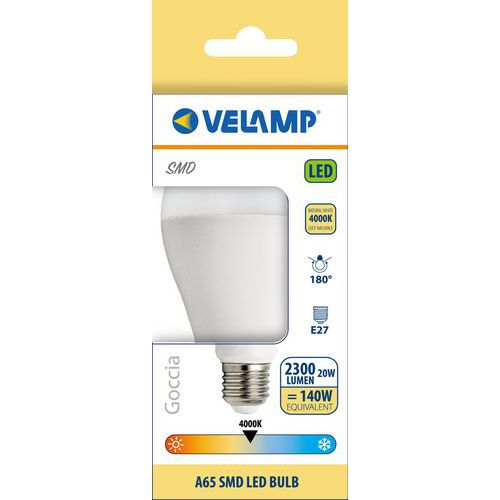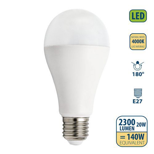 Ampoule Led Smd A65 20W culot E27 avec une durée de vie de 20000 heures (bien supérieure aux standards du marché).