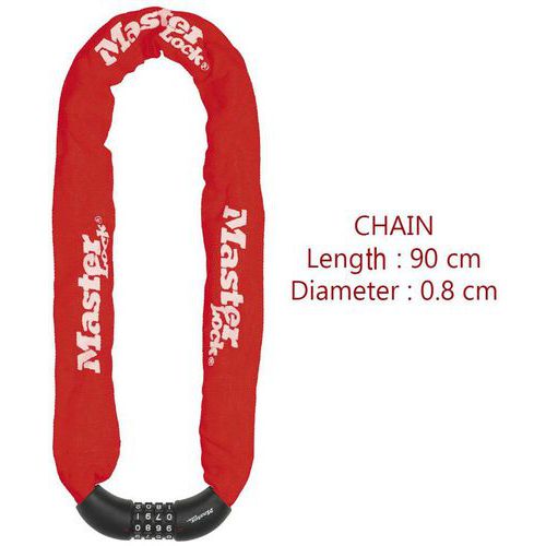 | Intitulé du produit | Antivol chaîne pour velo à combinaison, Ø: 8 mm, Longueur: 900 mm, Poids du produit: 1.133 kg |