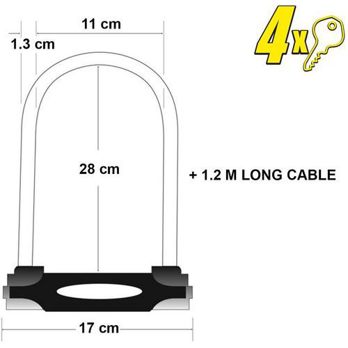 | Intitulé du produit | Antivol en U avec câble XL 8285EUR, Ø: 13 mm, Longueur: 335 mm, Nb de clés: 4, Poids du produit: 1.67 kg |