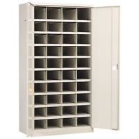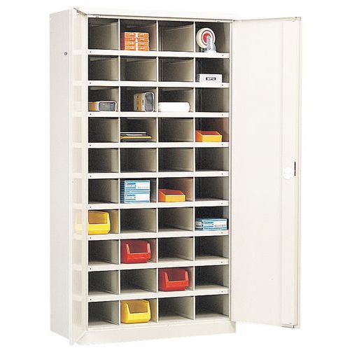 Armoire à casiers fournie complète avec tablettes laquées et séparations métalliques réglables.