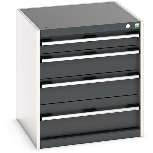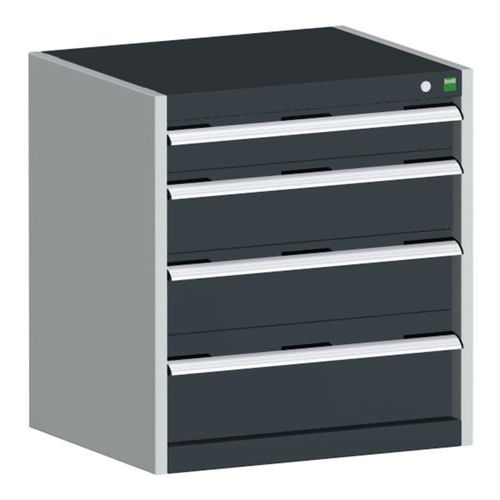 Equerres de renfort pour une meilleure rigidité, charge admissible : 1 tonne Tiroirs standard pour charges 75 Kg. Montés sur roulements avec une extension télescopique à 100% (ouverture totale). Poignées ergonomiques permettant le passage de la main par de dessus ou le dessous, système de blocage des tiroirs en standard, verrouillage individuel des tiroirs disponible en option. Conseils de sécurité : - installer le meuble sur une surface plane - le fixer sur un mur ou une cloison avec une fixation adaptée - veiller à ne pas dépasser la charge maximum conseillée, ainsi qu’à sa bonne répartition Fabriqué au RU Charge maxi (kg) : 1500 kg