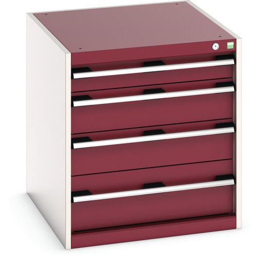 Equerres de renfort pour une meilleure rigidité, charge admissible : 1 tonne Tiroirs standard pour charges 75 Kg. Montés sur roulements avec une extension télescopique à 100% (ouverture totale). Poignées ergonomiques permettant le passage de la main par de dessus ou le dessous, système de blocage des tiroirs en standard, verrouillage individuel des tiroirs disponible en option. Conseils de sécurité : - installer le meuble sur une surface plane - le fixer sur un mur ou une cloison avec une fixation adaptée - veiller à ne pas dépasser la charge maximum conseillée, ainsi qu’à sa bonne répartition Fabriqué au RU Charge maxi (kg) : 1500 kg