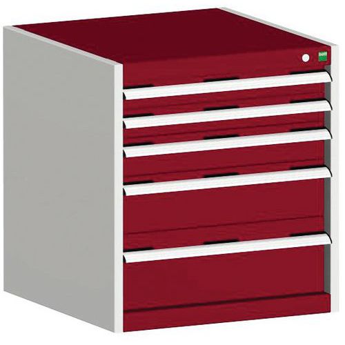 Equerres de renfort pour une meilleure rigidité, charge admissible : 1 tonne Tiroirs standard pour charges 75 Kg. Montés sur roulements avec une extension télescopique à 100% (ouverture totale). Poignées ergonomiques permettant le passage de la main par de dessus ou le dessous, système de blocage des tiroirs en standard, verrouillage individuel des tiroirs disponible en option. Conseils de sécurité : - installer le meuble sur une surface plane - le fixer sur un mur ou une cloison avec une fixation adaptée - veiller à ne pas dépasser la charge maximum conseillée, ainsi qu’à sa bonne répartition Fabriqué au RU Charge maxi (kg) : 1500 kg