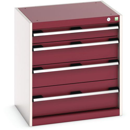 Equerres de renfort pour une meilleure rigidité, charge admissible : 1 tonne Tiroirs standard pour charges 75 Kg. Montés sur roulements avec une extension télescopique à 100% (ouverture totale). Poignées ergonomiques permettant le passage de la main par de dessus ou le dessous, système de blocage des tiroirs en standard, verrouillage individuel des tiroirs disponible en option. Conseils de sécurité : - installer le meuble sur une surface plane - le fixer sur un mur ou une cloison avec une fixation adaptée - veiller à ne pas dépasser la charge maximum conseillée, ainsi qu’à sa bonne répartition Fabriqué au RU Charge maxi (kg) : 1500 kg
