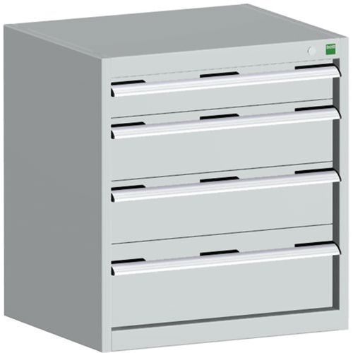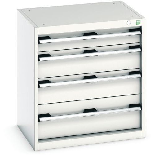 Equerres de renfort pour une meilleure rigidité, charge admissible : 1 tonne Tiroirs standard pour charges 75 Kg. Montés sur roulements avec une extension télescopique à 100% (ouverture totale). Poignées ergonomiques permettant le passage de la main par de dessus ou le dessous, système de blocage des tiroirs en standard, verrouillage individuel des tiroirs disponible en option. Conseils de sécurité : - installer le meuble sur une surface plane - le fixer sur un mur ou une cloison avec une fixation adaptée - veiller à ne pas dépasser la charge maximum conseillée, ainsi qu’à sa bonne répartition Fabriqué au RU Charge maxi (kg) : 1500 kg