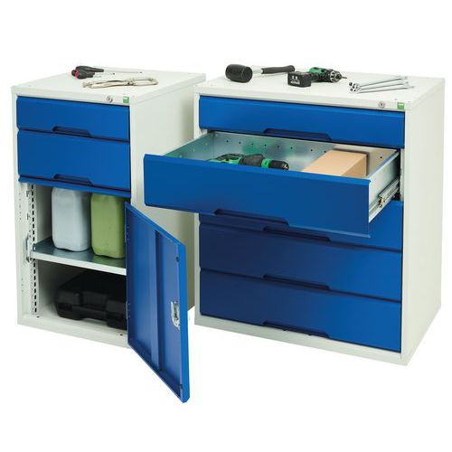 Tiroirs montés sur glissières à roulements supportant une charge de 60 Kg.