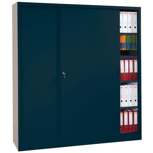 Armoire à portes coulissantes verrouillable à l'aide de la serrure.
