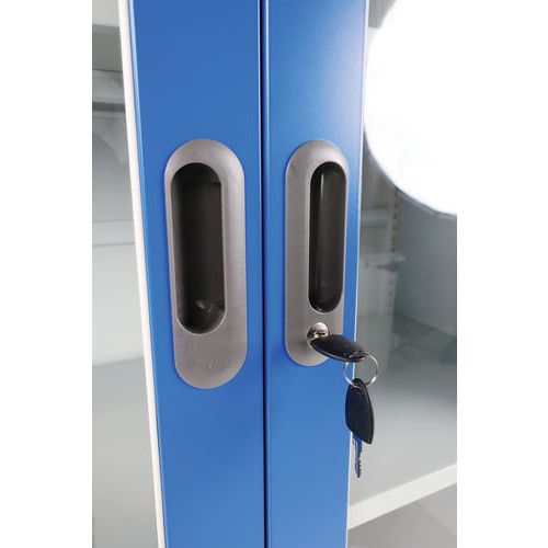 - Armoire à porte transparente, permet un contrôle visuel immédiat du contenu sans ouverture des portes.
