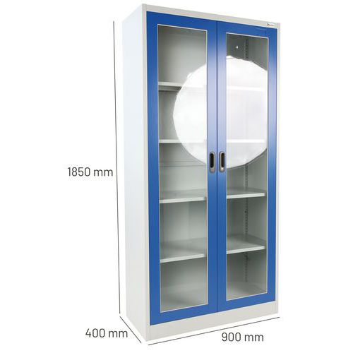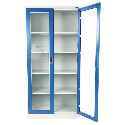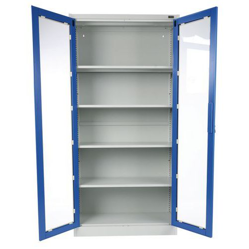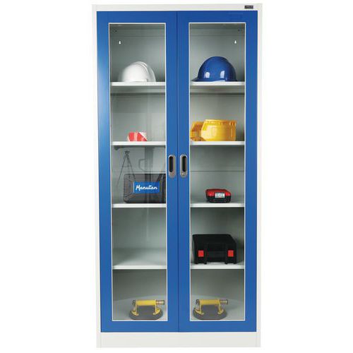 Armoire à porte transparente 4 tablettes - 200 kg - Manutan Expert