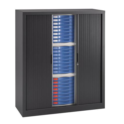 Stockage à plat : gain de place. Recherche de documents facilitée grâce au code couleur des étiquettes. Tiroirs interchangeables et facilement maniables. Fermeture par une serrure. Optez pour un système de stockage sûr et extrêmement pratique, offrant de nombreux tiroirs. Optez pour un système de stockage sûr et extrêmement pratique, offrant de nombreux tiroirs
