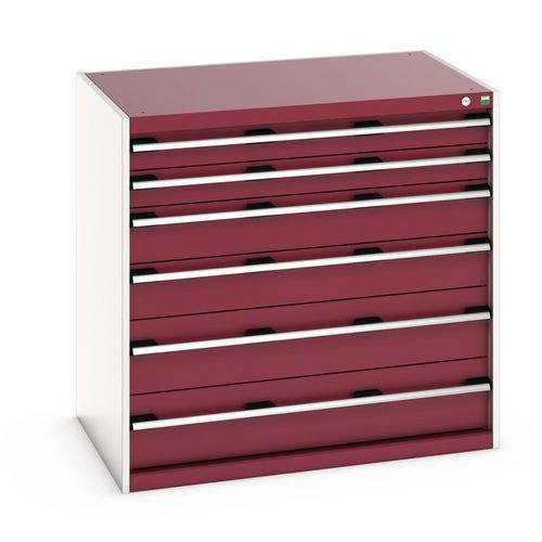 Poignées ergonomiques permettant le passage de la main par de dessus ou le dessous, système de blocage des tiroirs en standard, verrouillage individuel des tiroirs disponible en option.