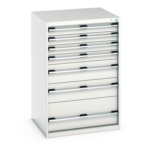 Poignées ergonomiques permettant le passage de la main par de dessus ou le dessous, système de blocage des tiroirs en standard, verrouillage individuel des tiroirs disponible en option.