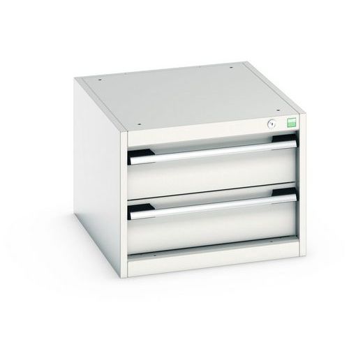 Poignées ergonomiques permettant le passage de la main par de dessus ou le dessous, système de blocage des tiroirs en standard, verrouillage individuel des tiroirs disponible en option.