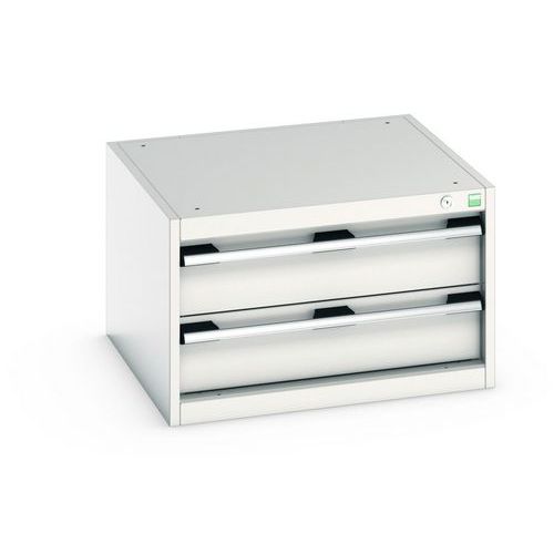 Poignées ergonomiques permettant le passage de la main par de dessus ou le dessous, système de blocage des tiroirs en standard, verrouillage individuel des tiroirs disponible en option.