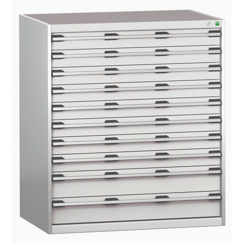 Armoire à tiroirs Cubio, Charge maxi: 1500 kg, Matériau: Acier, Hauteur hors tout: 1200 mm, Nb de tiroirs: 10 Armoire à tiroirs Cubio, Charge maxi: 1500 kg, Matériau: Acier, Hauteur hors tout: 1200 mm, Nb de tiroirs: 10