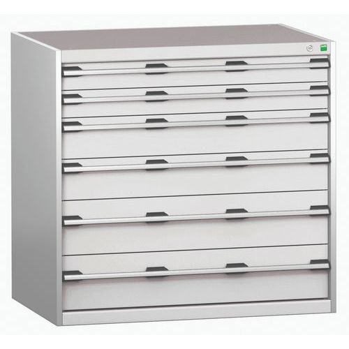 Armoire à tiroirs Cubio, Charge maxi: 1500 kg, Matériau: Acier, Hauteur hors tout: 800 mm, Nb de tiroirs: 7