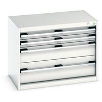 Armoire à tiroirs Cubio, Charge maxi: 1500 kg, Matériau: Acier, Hauteur hors tout: 600 mm, Nb de tiroirs: 4